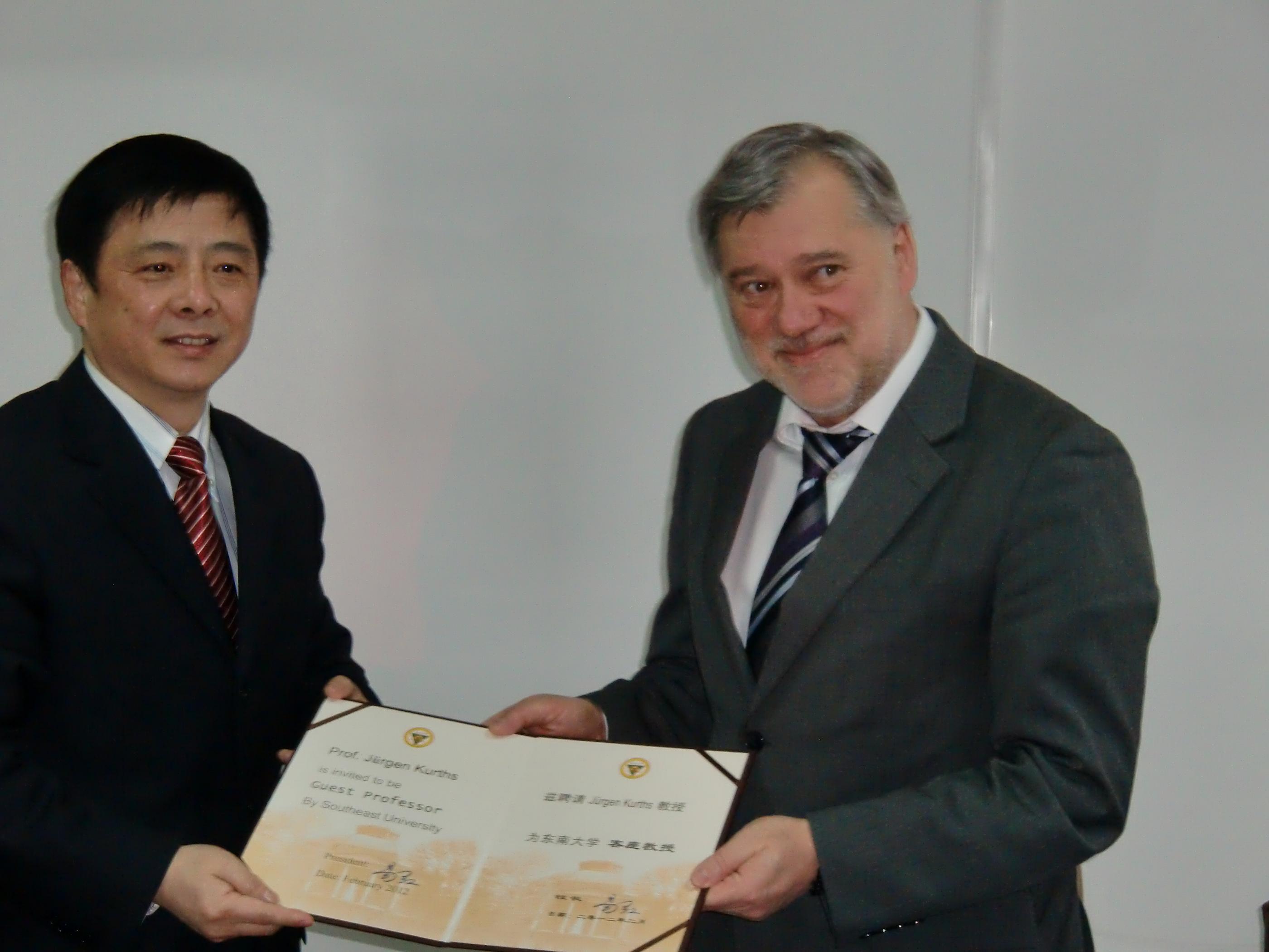 | 浦跃朴副校长为Kurths教授颁发客座教授证书 |