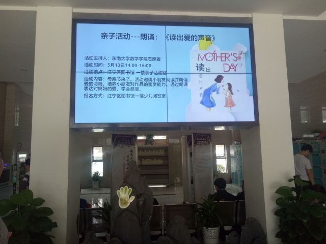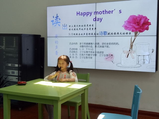 350vip8888新葡的京集团与央视《朗读者》节目合作,将阅读这一活动带进了350vip8888新葡的京集团学生的身边,并取得了巨大成功。今年,《朗读者》节目再次开始,与央视再度合作的我们希望能将阅读带到更多人身边。时间又恰逢母亲节,故志服部将朗读与感恩相结合,与江宁图书馆开展了“读出爱的声音”部门小活动。